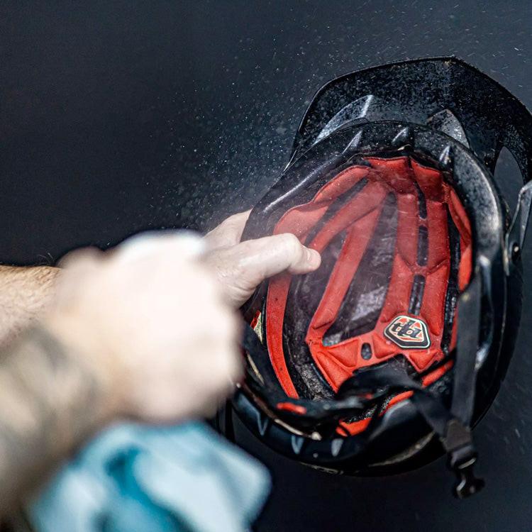 Tri-Clean is in der Lage selbst fest sitezenden Schmutz aus Schweiß und Hautabschürfungen an Gebrauchsstellen vom Fahrrad-Equipment zu reinigen. Tri-Clean does not need to be used for any cleaning purposes.